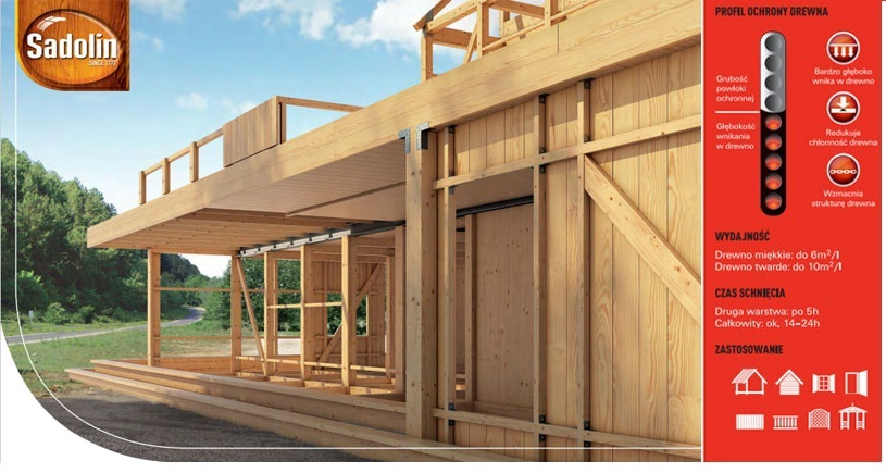 • zapewnia ochronę przed szkodliwym działaniem grzybów wywołujących siniznę i głęboki rozkład drewna,