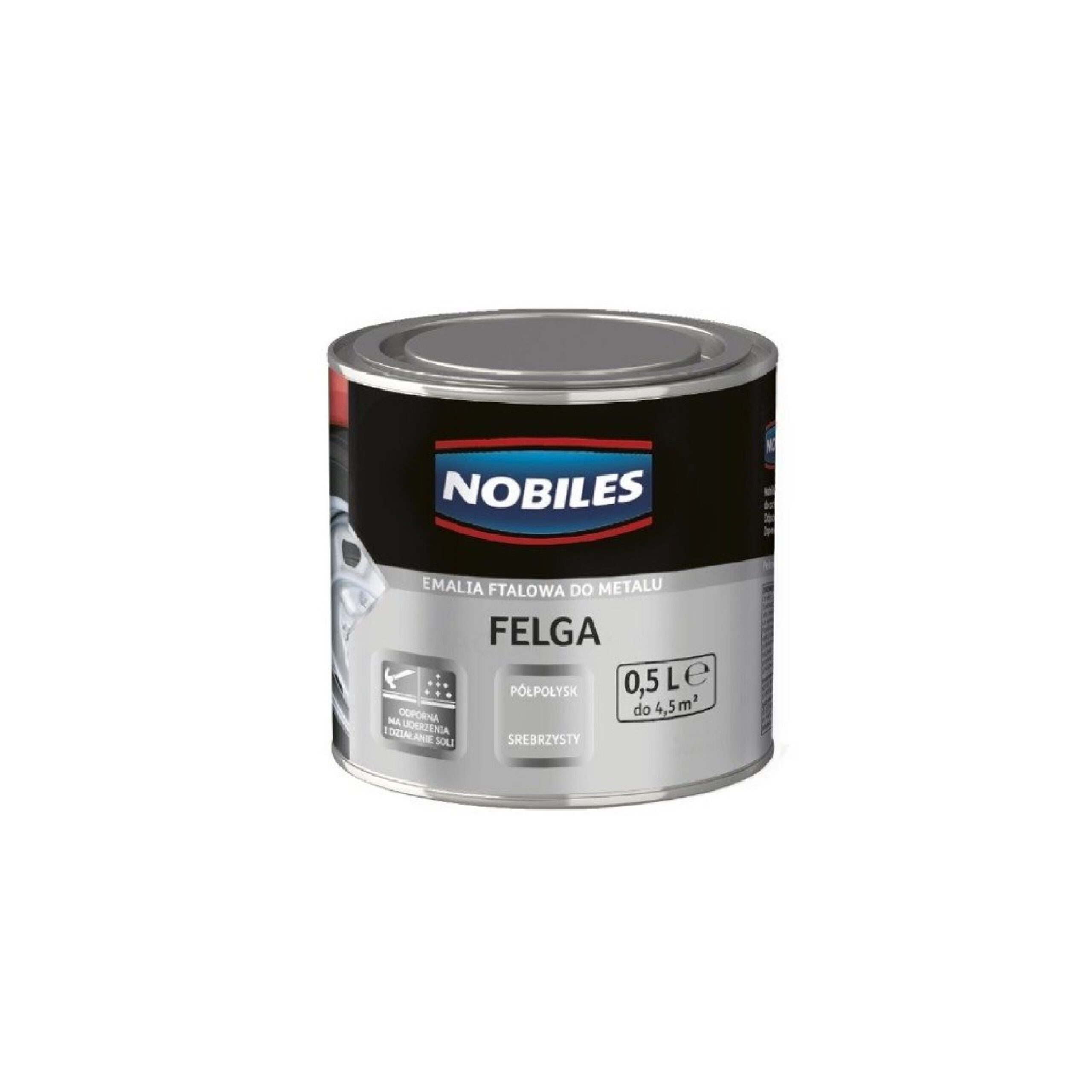 Nobiles Felga to emalia ftalowa przeznaczona do ochronnego i dekoracyjnego malowania felg samochodowych, jak również innych powierzchni metalowych, gdzie wymagany jest kolor srebrzysty z efektem metalicznym. Powłoka emalii o wykończeniu pół połysk charakteryzuje się dobrą przyczepnością do podłoża oraz odpornością na działanie czynników atmosferycznych i mechanicznych. Wyrób przeznaczony do malowania na zewnątrz pomieszczeń.