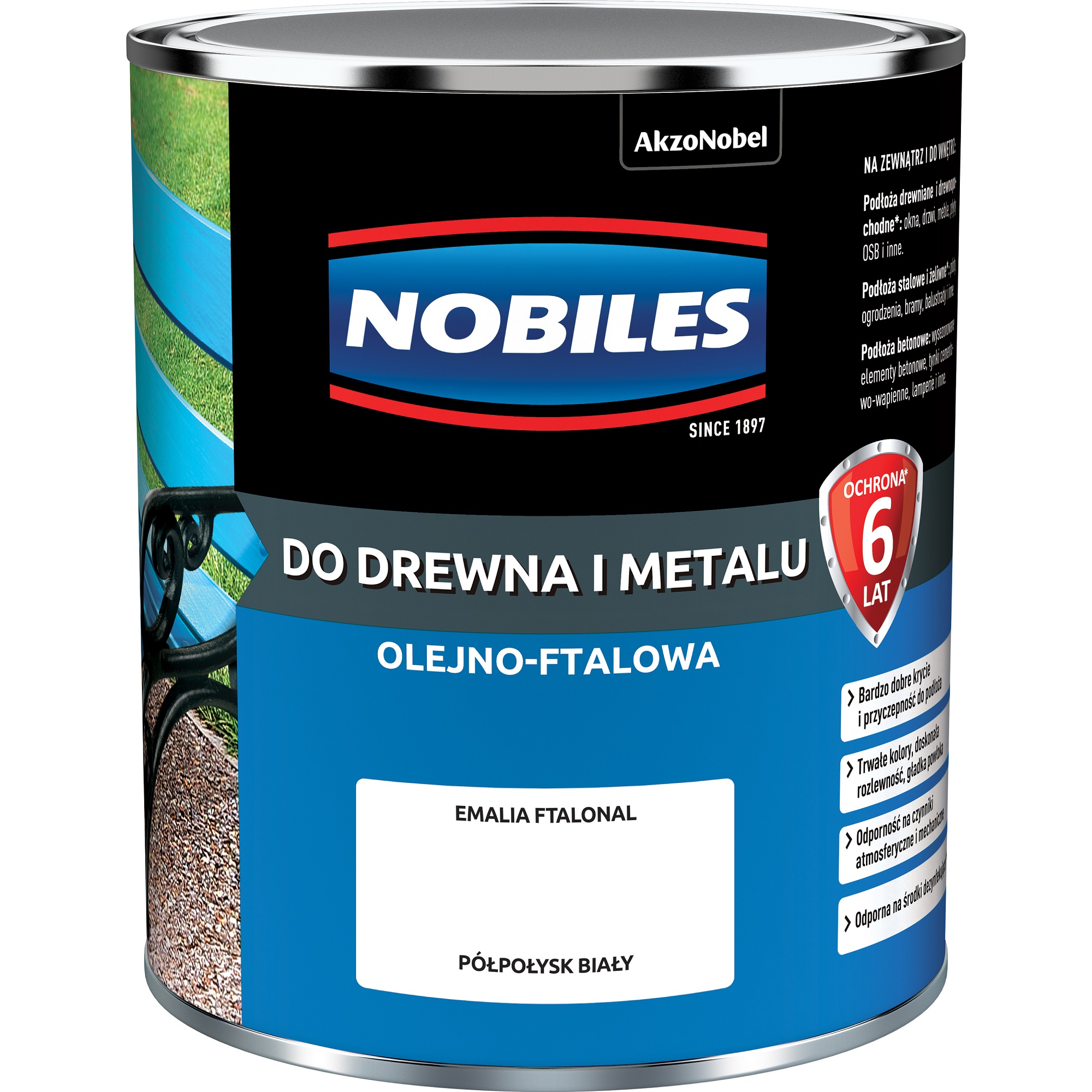 Nobiles Do Drewna i Metalu Ftalonal to nawierzchniowa farba alkidowa, dająca powłoki charakteryzujące się dobrą przyczepnością do podłoża, elastycznością oraz dobrą odpornością na czynniki atmosferyczne. Nobiles Ftalonal to farba do ochronnego i dekoracyjnego malowania powierzchni: stalowych, żeliwnych, drewnianych, betonowych oraz tynków cementowo – wapiennych pokrytych uprzednio farbami podkładowymi lub antykorozyjnymi. Służy do malowania konstrukcji stalowych np. elementów metalowych balkonów, malowania elementów drewnianych altan czy lamperii na tynkach cementowo – wapiennych. Może być stosowana wewnątrz i na zewnątrz obiektów.