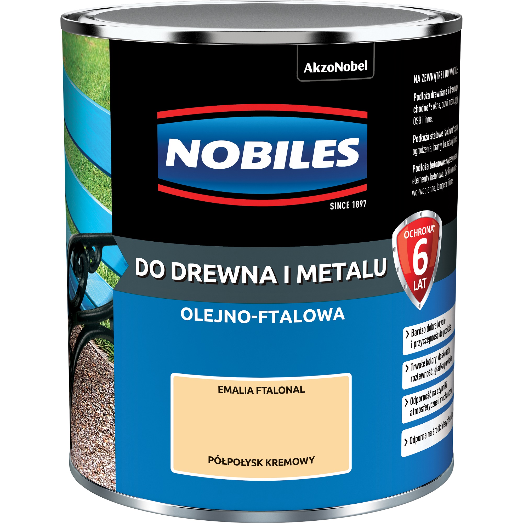 Nobiles Do Drewna i Metalu Ftalonal to nawierzchniowa farba alkidowa, dająca powłoki charakteryzujące się dobrą przyczepnością do podłoża, elastycznością oraz dobrą odpornością na czynniki atmosferyczne. Nobiles Ftalonal to farba do ochronnego i dekoracyjnego malowania powierzchni: stalowych, żeliwnych, drewnianych, betonowych oraz tynków cementowo – wapiennych pokrytych uprzednio farbami podkładowymi lub antykorozyjnymi. Służy do malowania konstrukcji stalowych np. elementów metalowych balkonów, malowania elementów drewnianych altan czy lamperii na tynkach cementowo – wapiennych. Może być stosowana wewnątrz i na zewnątrz obiektów.