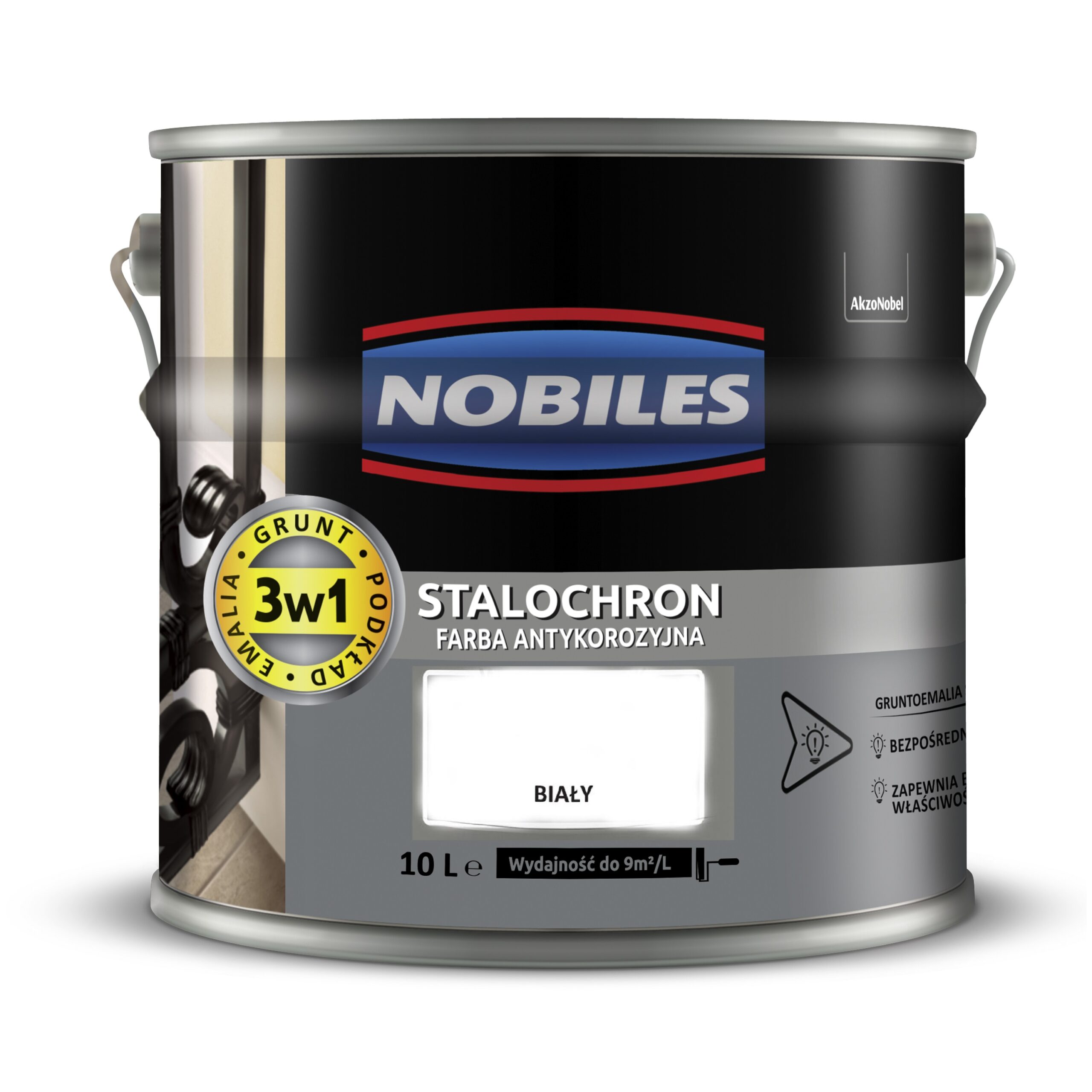 Nobiles Stalochron to farba antykorozyjna, przeznaczona do ochronno-dekoracyjnego malowania powierzchni stalowych i żeliwnych, wewnątrz i na zewnątrz pomieszczeń. Tworzy wysokiej jakości elastyczne powłoki odporne na działanie wszystkich czynników atmosferycznych, gwarantujące długoletnie i profesjonalne zabezpieczenie malowanej powierzchni. Nie wymaga stosowania farb podkładowych i może być nakładana bezpośrednio na nowe powierzchnie metalowe, jak również na miejsca pokryte rdzą.